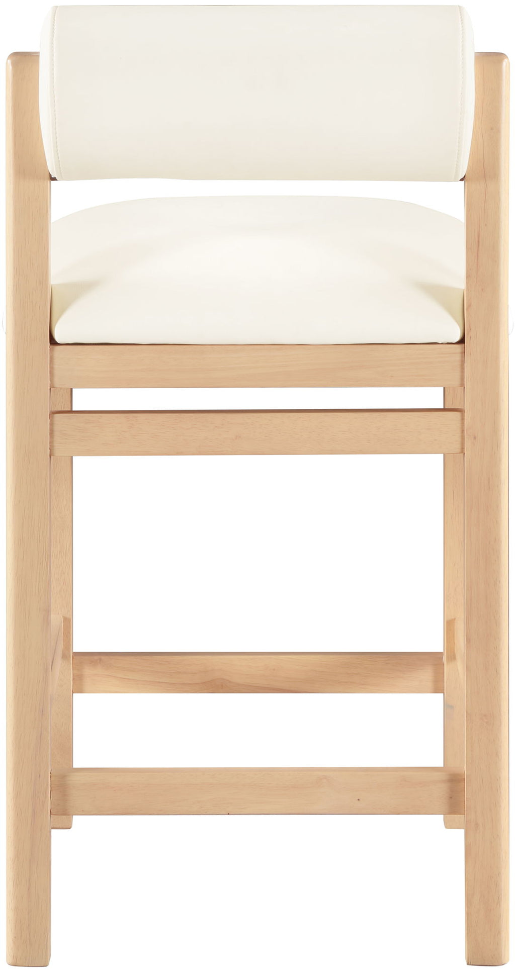 Soft textures and timeless design meet in the Roundhill counter stool, upholstered in a smooth vegan leather. A natural wood frame enhances its art deco silhouette, bringing warmth and sophistication to your dining space. Whether styled solo or paired with a set, this chair elevates the ambiance with understated elegance.
