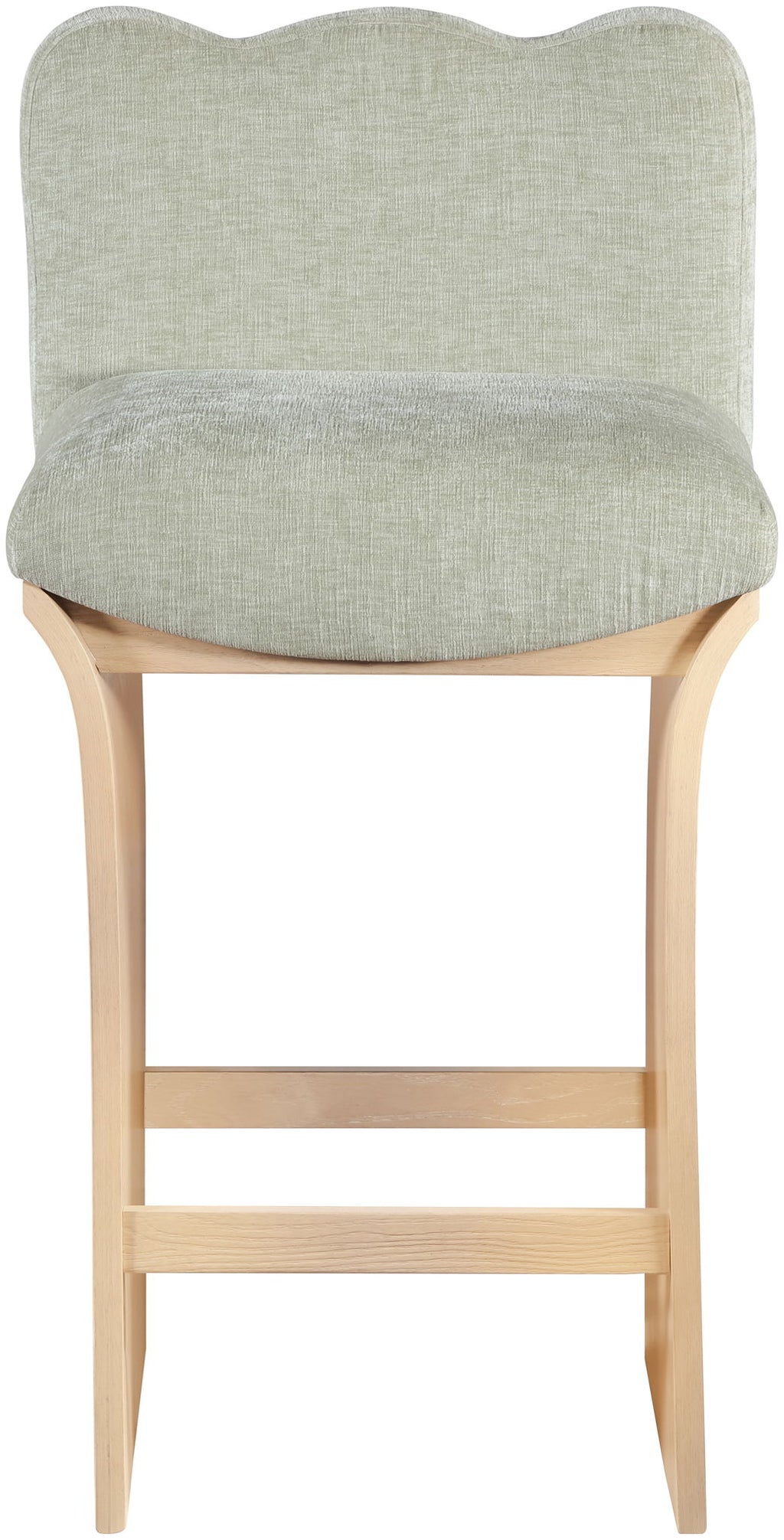 Sculptural curves and plush chenille transform the Shaw counter stool into a show-stopping statement piece. Anchored by a natural oak veneer base, this art deco-inspired stool radiates bold sophistication. Elevate your dining space with a striking blend of comfort and couture-worthy style.