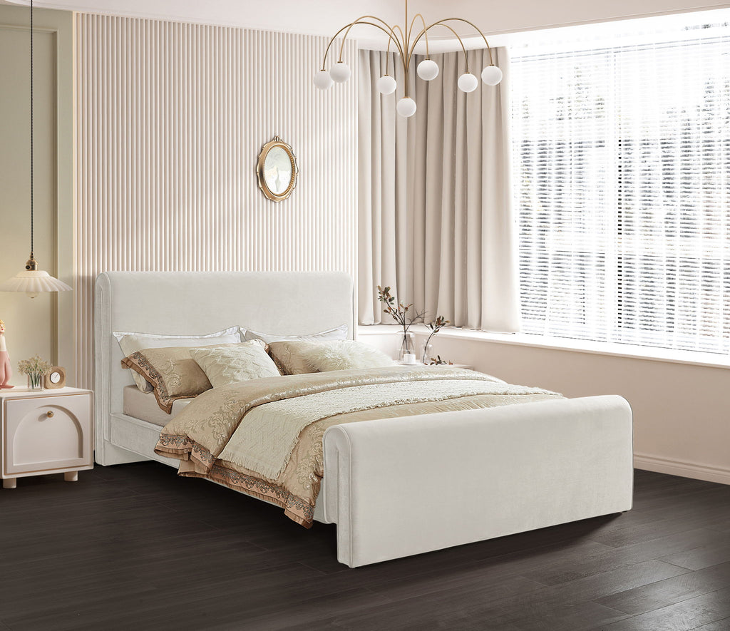 Cuddle up and rest from the welcoming confines of this Sloan velvet bed. This stunningly beautiful bed is just the thing for a bedroom makeover that turns heads. The bed's headboard, footboard and sides are covered in the softest rich velvet for a striking look that is elegantly contemporary in your master bedroom suite or other space. The curved design of the headboard and footboard add visual interest, and the design features a sturdy frame for dependable use.
