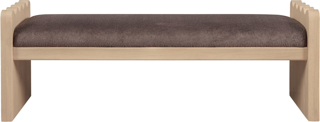 Transform your interior with the Sonia velour fur fabric upholstered bench finished in a rich natural wood finish, a harmonious blend of luxury and modern design. Ideal for enhancing the aesthetic of entryways, at the foot of a bed, or as a chic addition to your living room, this bench is as versatile as it is striking. It's the perfect choice for those seeking to add a sophisticated yet functional element to their home decor.