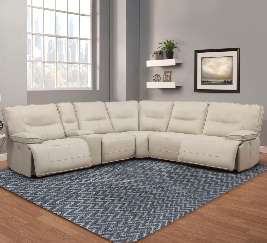 Spartacus - 6 Piece Modular Power Reclining Sectional With Power Adjustable Headrests - Oyster