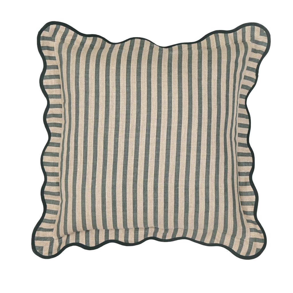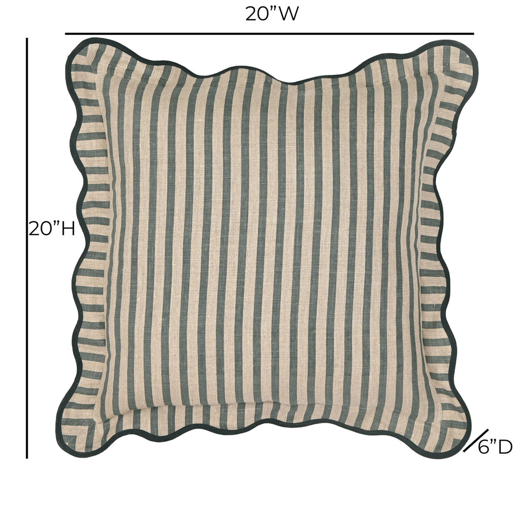 Bring a touch of relaxed sophistication to your space with this decorative pillow, available in three earthy colors. Its cotton/linen blend provides a soft, textured foundation, while the striped design and scalloped edge trim add subtle pattern and playful detail; perfect for layering on sofas, beds, or favorite chairs.