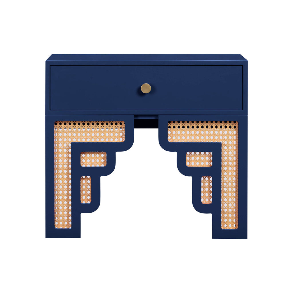 Inspired by the Art Moderne style, the Suzie Nightstand alludes to Palm Springs' art-deco design through its bold colors and curvaceous form. This wooden nightstand features a soft close drawer for practicality; while its rounded edges and woven rattan details add a playful twist. The Suzie will cement itself as the perfect balance between contemporary living with a touch of glamour in your space!