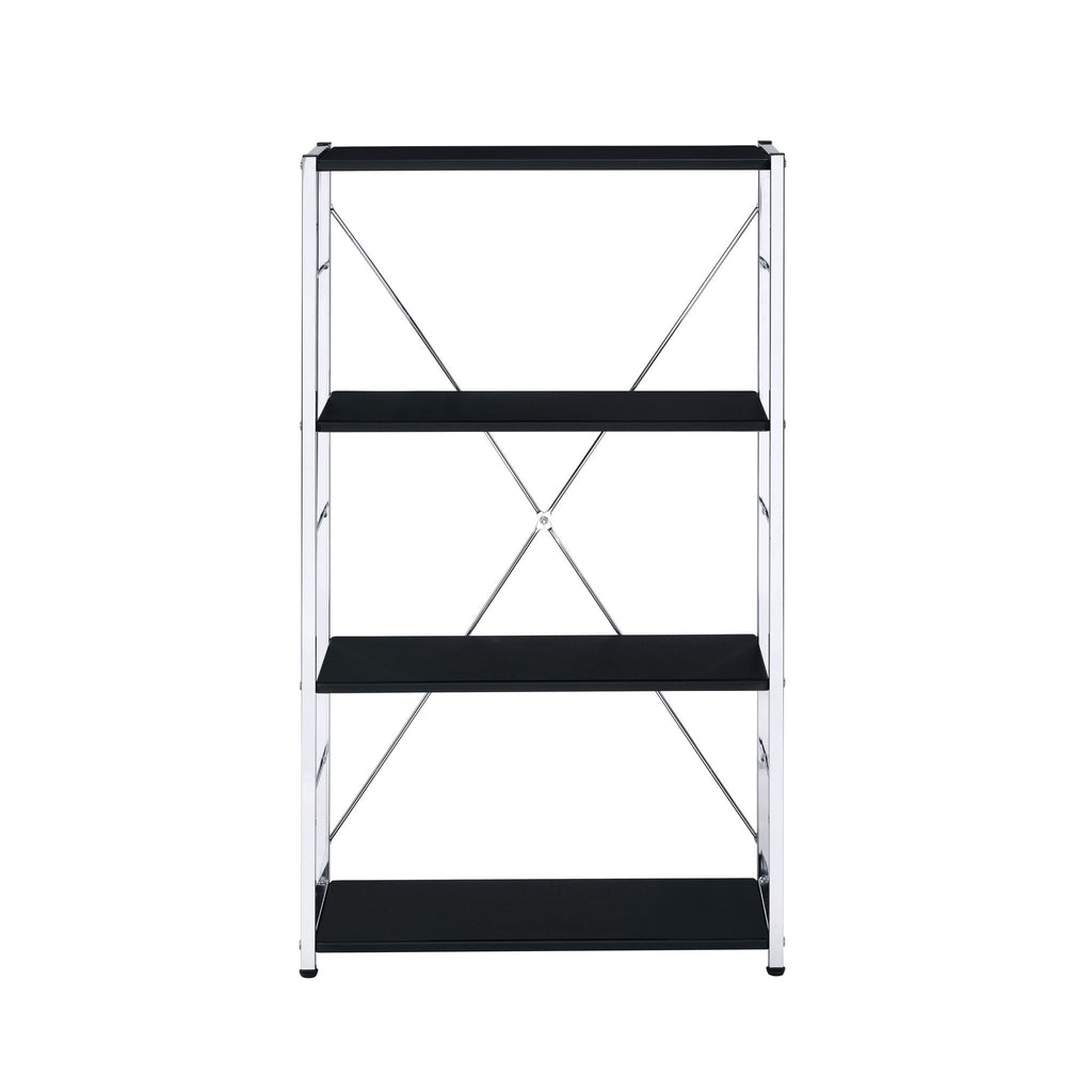 Rectangular BookshelfModern Concise Design Chrome Metal Frame X-Shape Cross Bar4 Tier Shelf Book Case