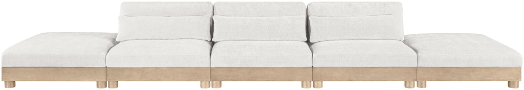Turin - Chenille Fabric Upholstered 5 Piece Modular Sofa - Cream / Painted Natural