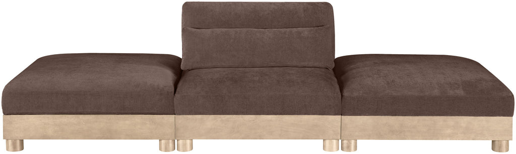 Turin - Chenille Fabric Upholstered 3 Piece Modular Sofa - Brown / Painted Natural
