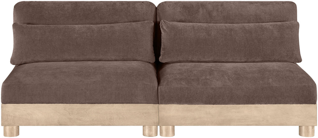 Turin 95.5" - Chenille Fabric Upholstered 2 Piece Modular Loveseat - Brown / Painted Natural