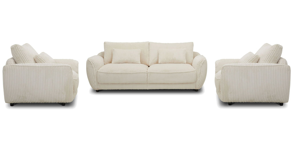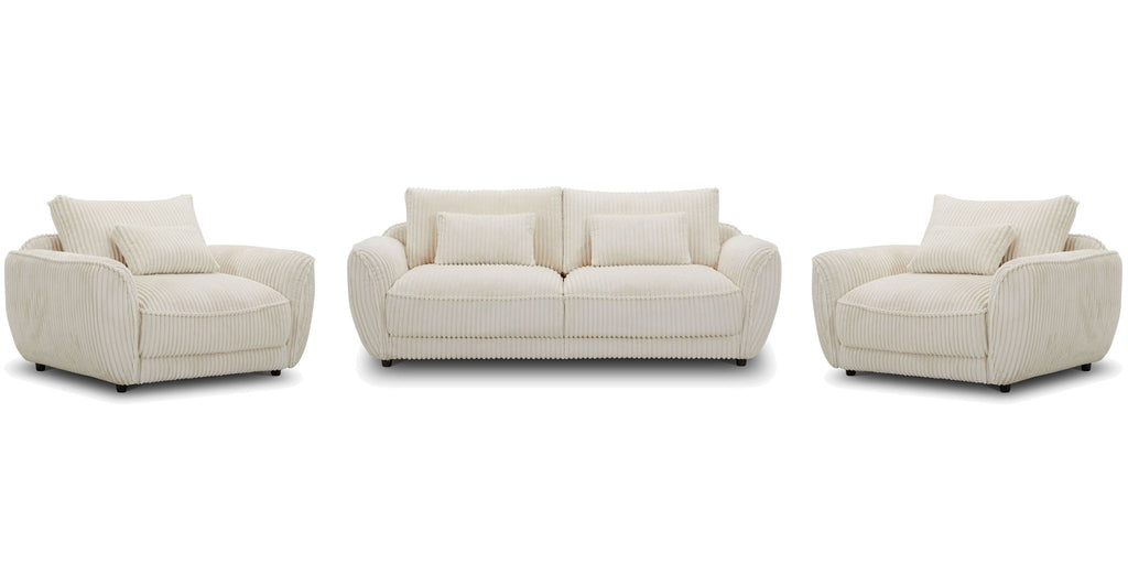 Experience ultimate comfort and style with our two-seat sofa and Chair and Half. The seat cushions are padded with high-density Dacron and topped with sterilized down and feathers for maximum plushness, providing a cloud-like feel. The low-seated frame creates a relaxed feel and accentuates the oversized cushion contours, perfect for lounging and unwinding. The sofa includes coordinating comfort pillows and is generously scaled for sumptuous comfort. Exquisitely tailored and upholstered in and ultra-plush wide corded velvet and matching welt, this sofa is sure to be a statement piece in any room. The accent pillows and seat cushions are encased in cotton, down-proof channeled ticking to help them keep their shape and prevent feather migration, ensuring the sofa maintains its plushness for years to come.