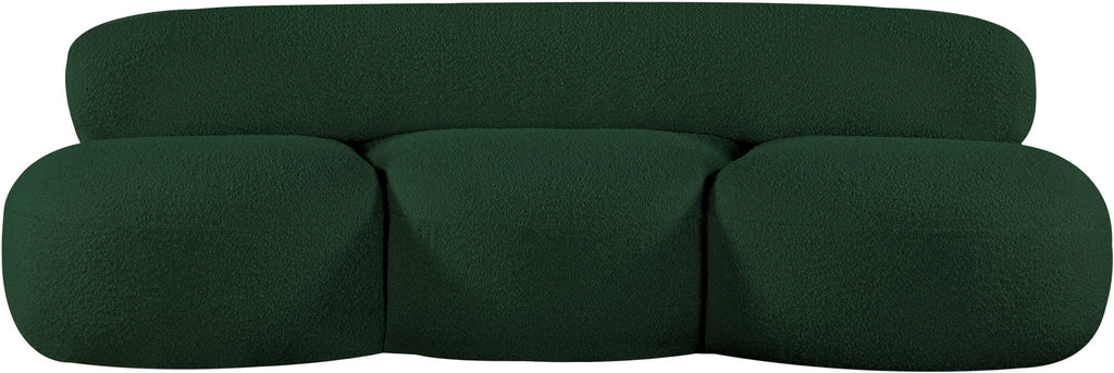 Discover timeless beauty with this Venti boucle fabric living room sofa that's designed to elevate your interior space. This exceptionally crafted art-deco-inspired chair is part of the Venti collection and boasts an alluring curved shape to add elegance and refinement to your room. Upholstered in rich boucle fabric, the sofa has a plush texture that's oh-so-cozy against the skin. The art deco styling makes it a real statement piece, whether you place it in your living room, home office, or your favorite reading nook.