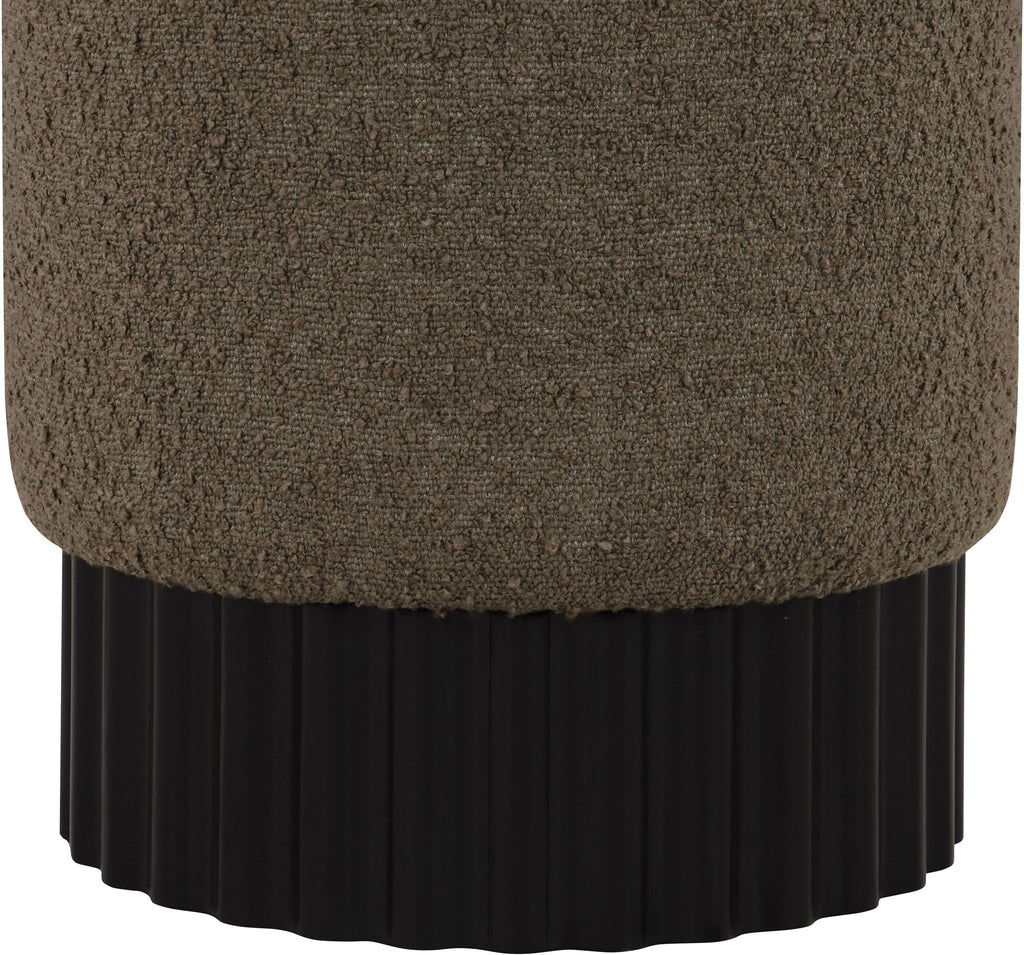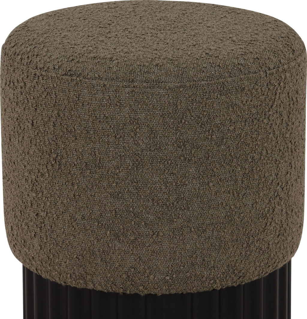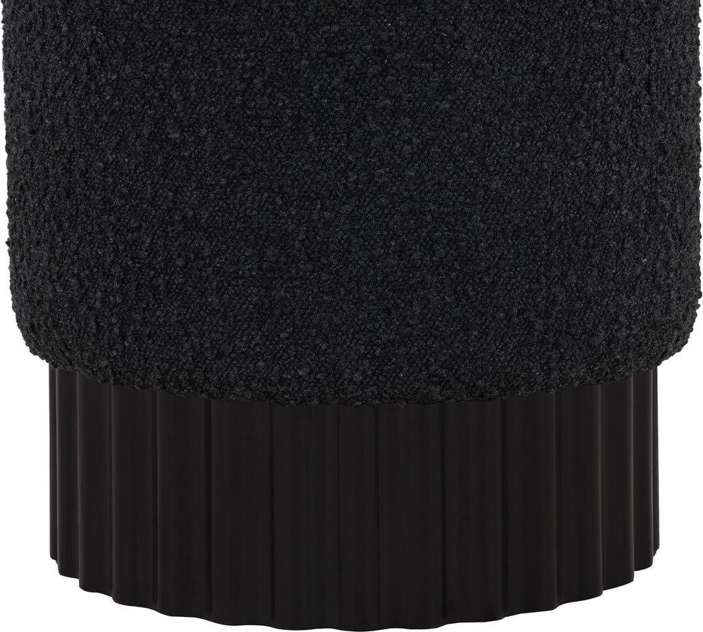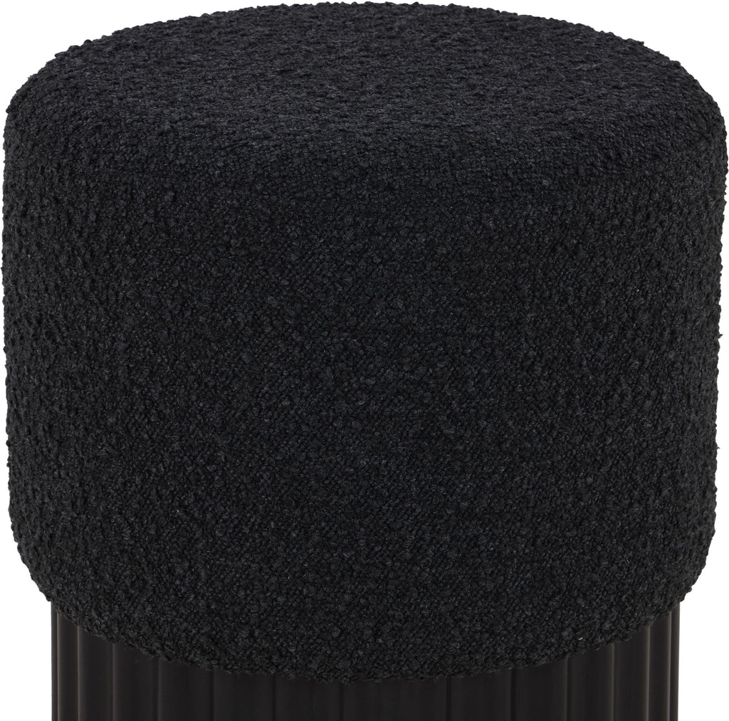 Indulge in the luxurious texture of the Veranda Boucle Fabric Ottoman/Stool. It boasts a rich boucle fabric that is paired with an elegant and sturdy solid wood base, featuring a black finish that highlights the beautiful wood grain patterns. This unique combination of materials creates a perfect blend of style and durability, making it an ideal addition to any modern or traditional interior design.