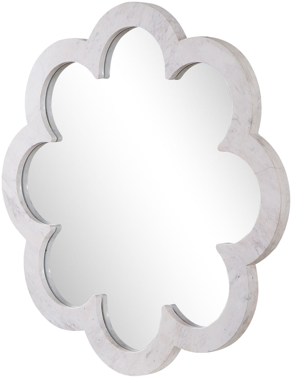 Bold flower-shaped marble and a striking hue make the Vicenza mirror a captivating focal point. Sculpted from genuine marble, its playful silhouette brings a touch of whimsy while maintaining an upscale vibe. Perfect for adding texture and elegance to any wall, this mirror doubles as a piece of art.