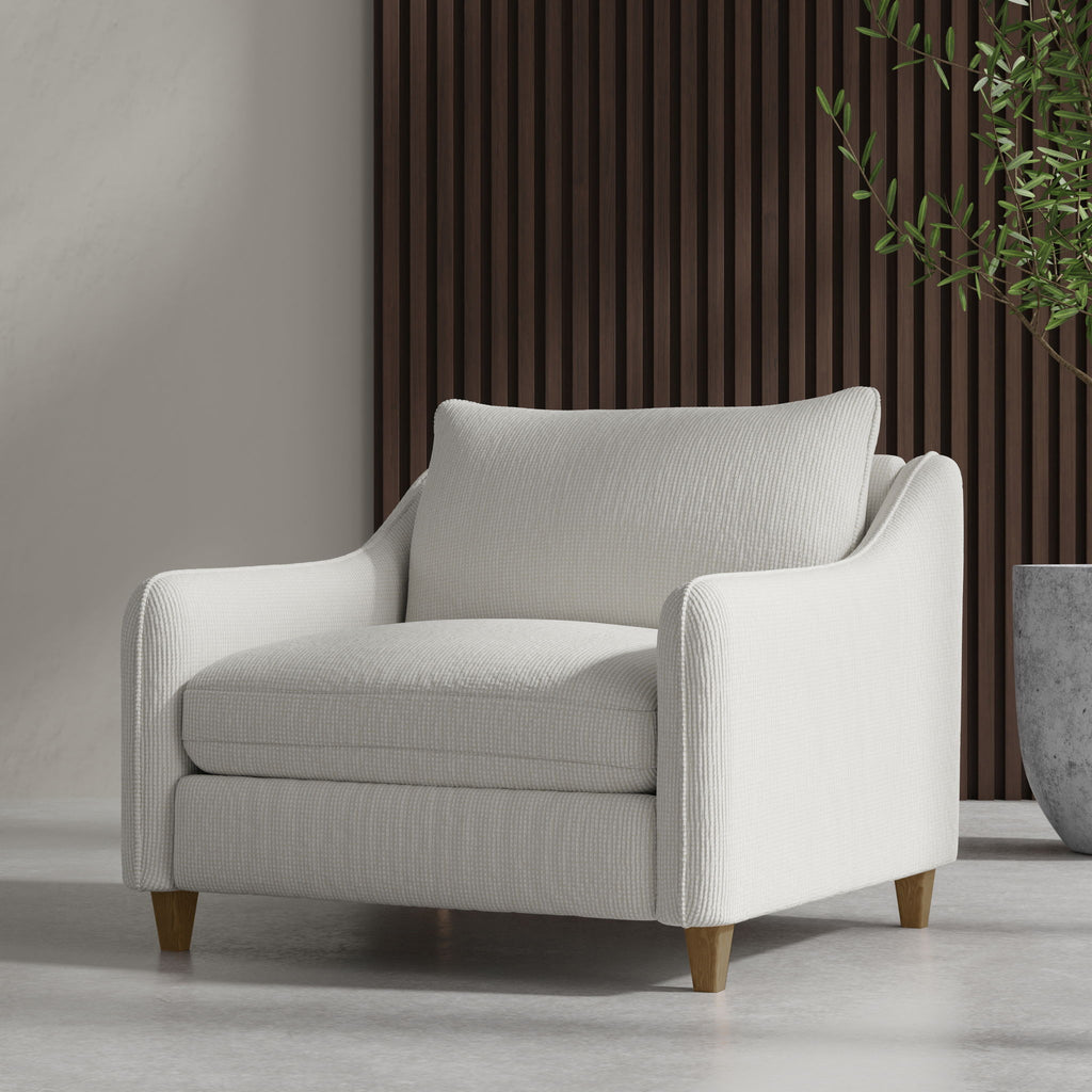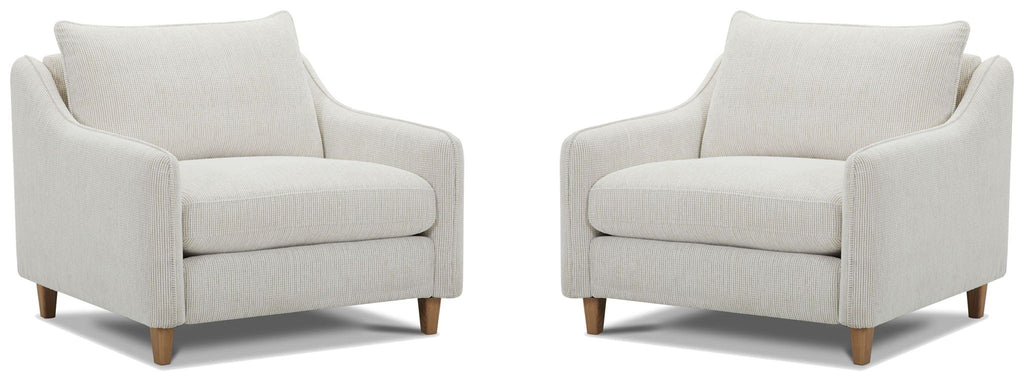 Whether you're curling up with a book or entertaining guests, our Chair and a Half provides the perfect combination of comfort and style. The wood feet in a natural finish add a distinctive touch and lend a modern vibe to the design. Exquisitely tailored and upholstered in a durable, 100-percent polyester fabric with rich texture and velvety softness, this chair provides a cozy and luxurious seating experience. The seat cushions are padded with high-density Dacron and topped with sterilized down and feathers for maximum plushness, while the seating features no-sag springs and high-density webbing for long-lasting support. The wood frames feature reinforced corner blocks for lasting strength and stability, and select woods are kiln-dried to minimize warping and splitting while ensuring longevity. The seat cushions are encased in cotton, down-proof channeled ticking to help them keep their shape and prevent feather migration.