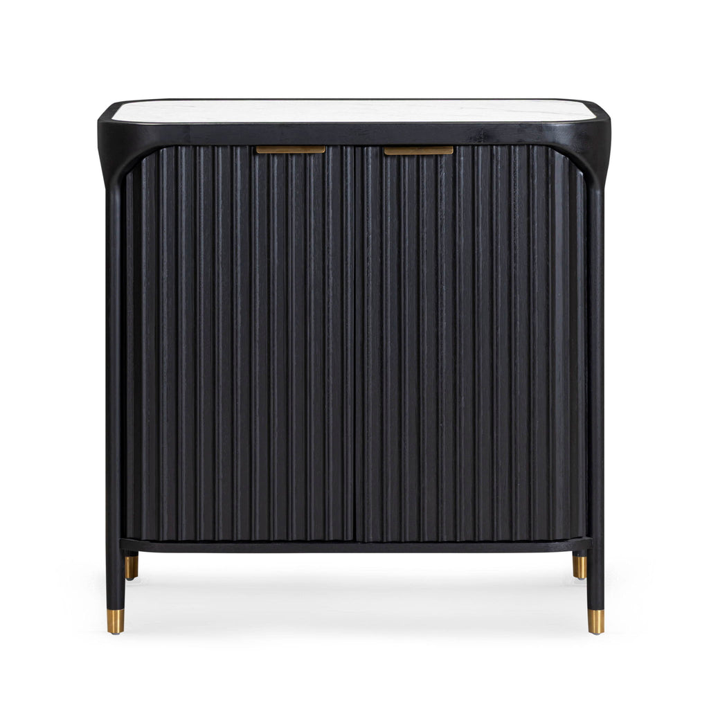 The Yaha Bar Cabinet is built around how a bar actually functions at home. Solid hardwood construction gives it a grounded presence, while the synthetic marble top offers a durable surface for mixing, serving, and everyday use. Soft close hardware keeps doors operating smoothly, and the refined hardware details add a clean, modern finish without overpowering the design. Inside, an adjustable shelf lets you organize bottles and glassware to suit your setup.