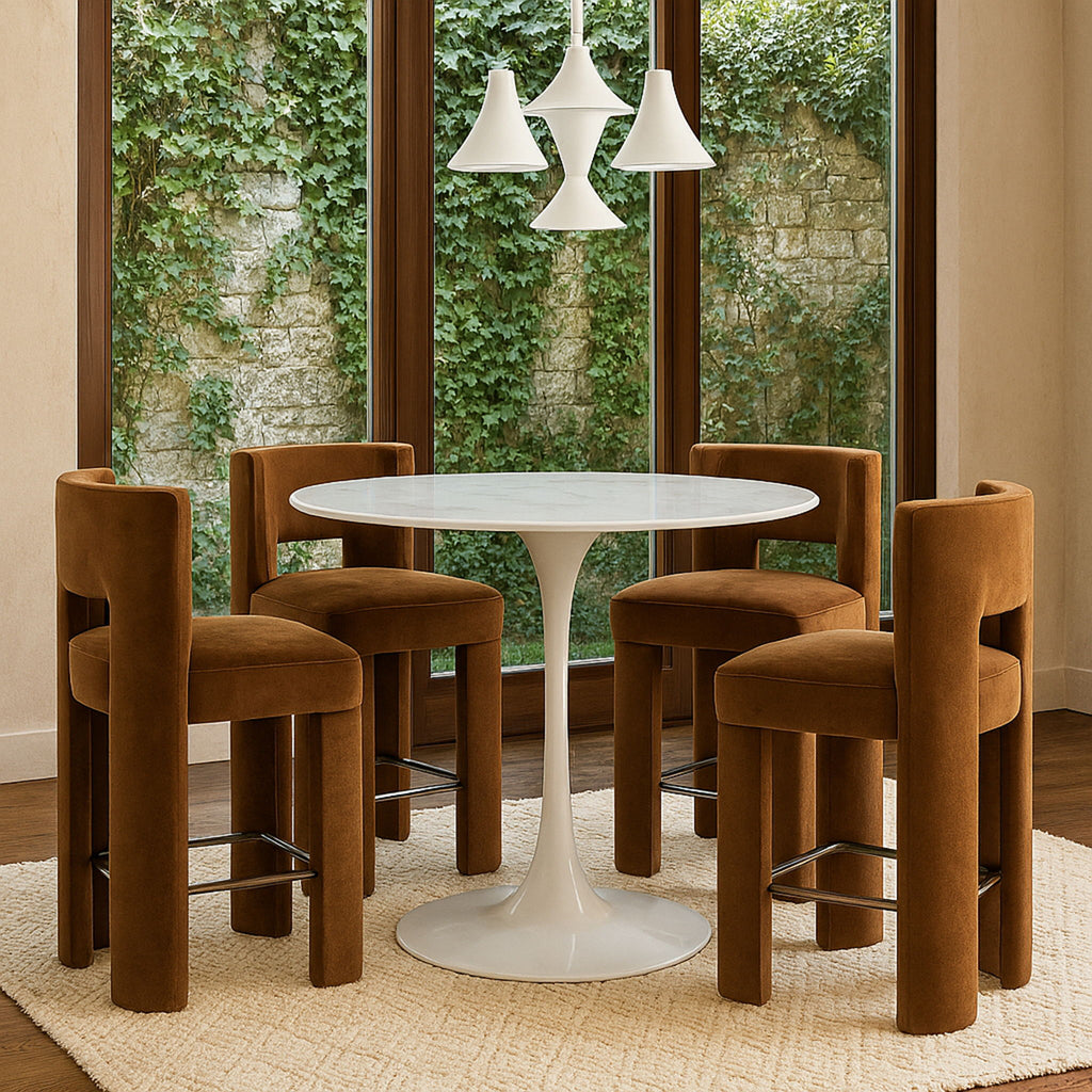 Zuno - Velvet Performance Fabric Upholstered Counter Stool - Saddle